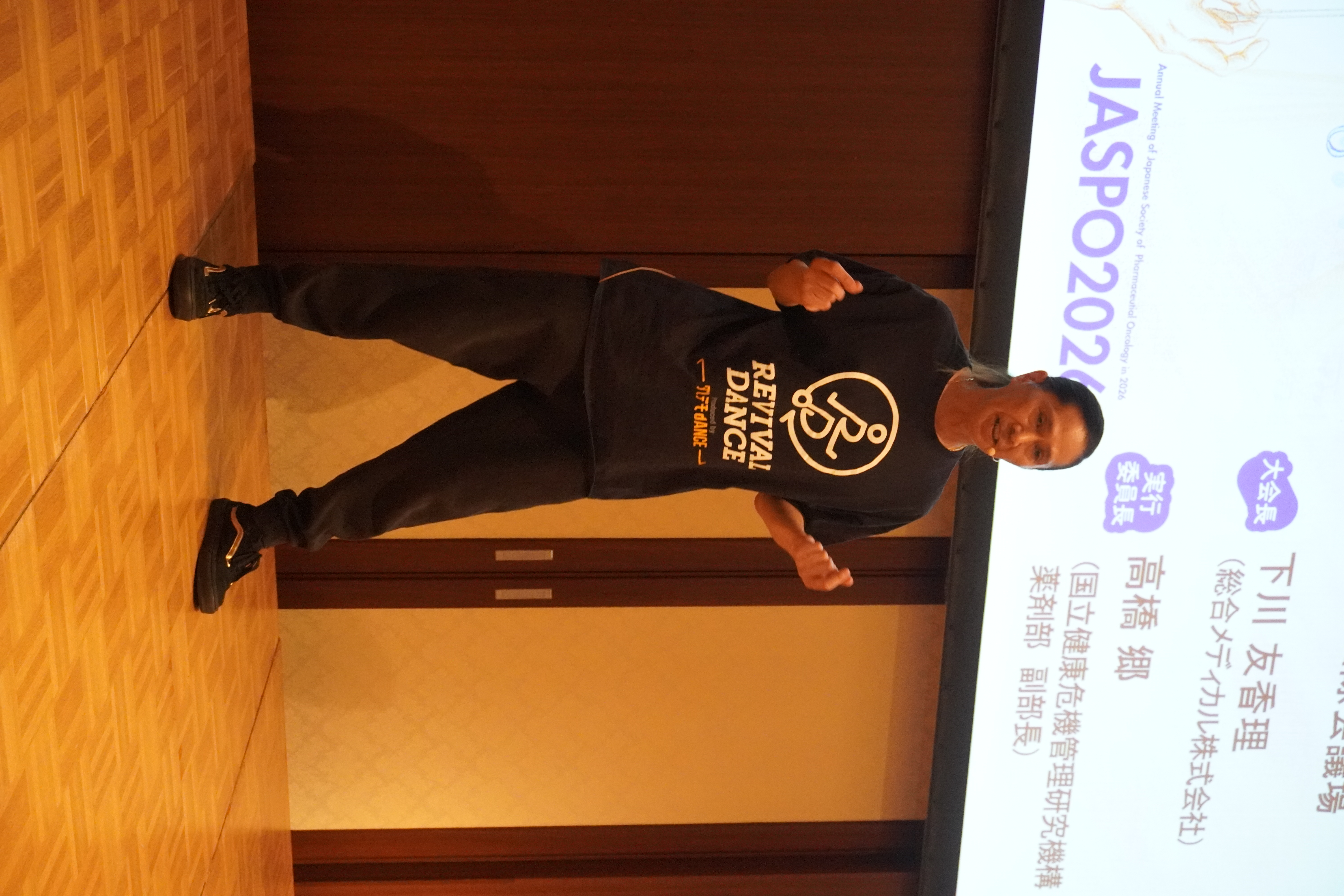 大会2日目には、福岡サンパレスにて市民公開講座「心と体を元気にする体力づくり」を開催いたしました。第一部では専門医・薬剤師が「がんに負けないカラダ作り」をテーマに、ロコモ対策や骨の健康維持について講演。第二部ではTRFのSAM氏をゲストに迎え、自宅で無理なく取り組める「リバイバルダンス」のレクチャーを実施しました。会場では薬剤師による相談ブース「教えて!薬剤師さん」も設置され、専門知識を地域の皆様へ還元する場となりました。