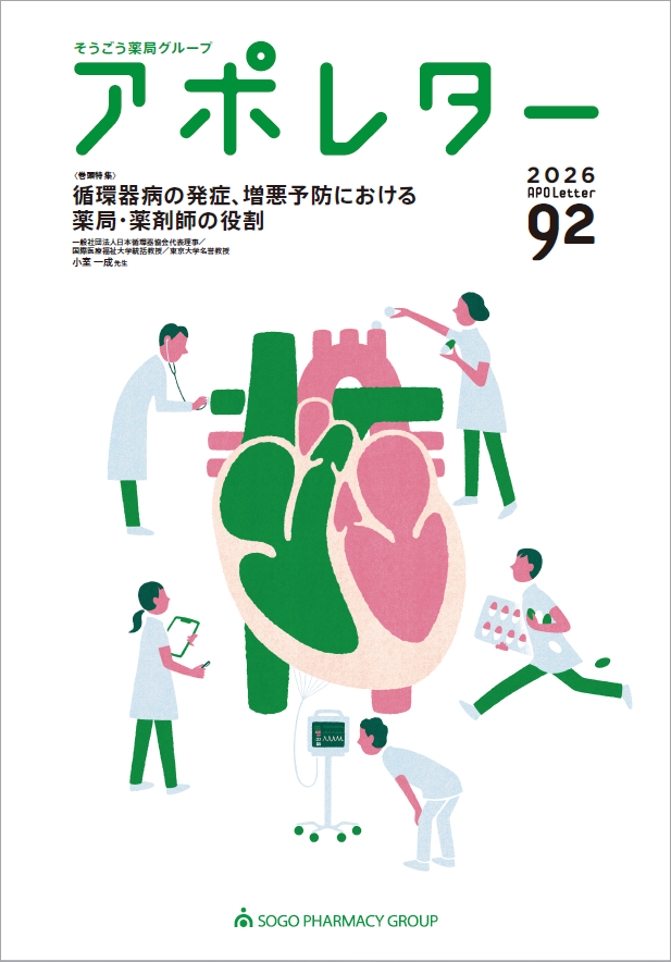 アポレターは、地域に密着する保険薬局「そうごう薬局グループ」ならではの取り組みや、最新の薬局経営のノウハウなどを紹介する当社発行の情報誌です。