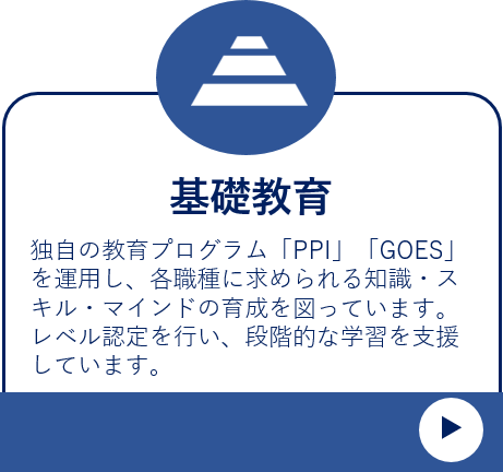 この育成視点をベースに、「仕事を任せて、人を育てる」という基本概念のもと、職場でのOJT、集合研修、昇格審査、自己啓発機会、ローテーションを組み合わせた統合的な学習教育によって、社員一人ひとりの成長とキャリア実現を支援しています。
